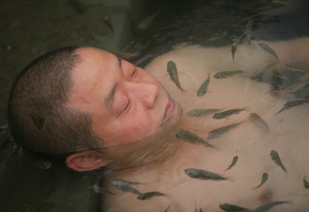 Di China,spa ikan tidak hanya terbatas di kaki. Di Dr.Fish, sebuah resor air panas di kota Chongqing, para penikmat spa merendam seluruh tubuh mereka di bak mandi air segar yang penuh dengan ikan. Jika ikan-ikan tersebut sudah menggerogoti semua kulit mati di tubuh seseorang, dipercaya orang tersebut akan memiliki aura yang lebih sehat.